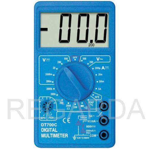 Цифровой мультиметр DT700C – один из серии карманных 3.5 -разрядных цифровых мультиметров с большим дисплеем для измерения постоянного, переменного напряжения, постоянного тока, сопротивлений, проверки диодов и транзисторов.