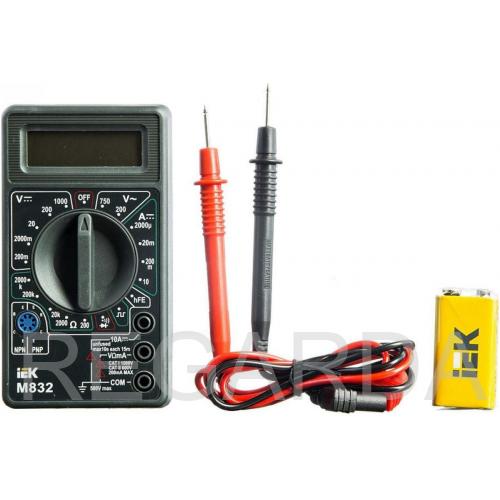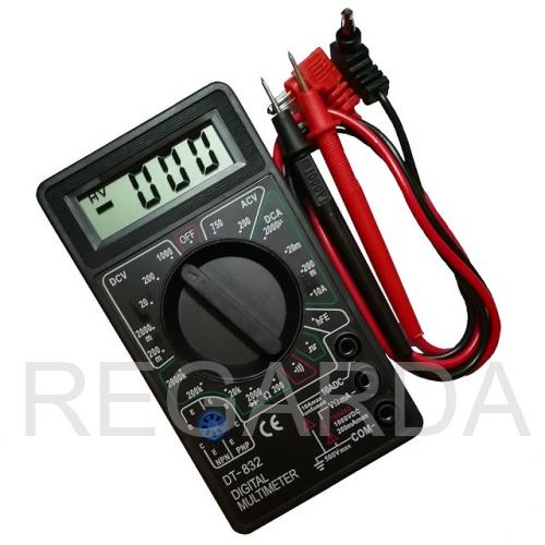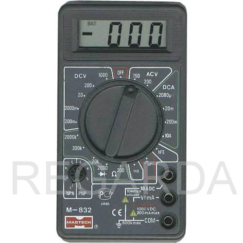 Портативный мультиметр M832 служит для измерения постоянного и переменного напряжения, постоянного тока, сопротивления, а также для проверки полупроводниковых диодов и прозвонки электрических цепей.