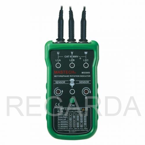 Многофункциональный ручной прибор MASTECH MS-5900 предназначен для определения порядка чередования фаз в трёхфазных цепях переменного тока, а также направления вращения трехфазных двигателей