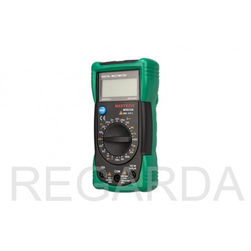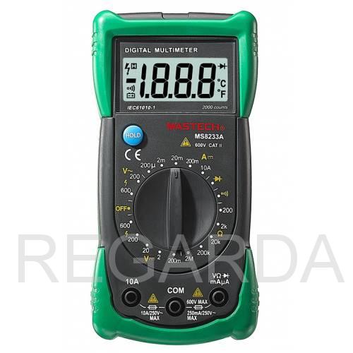 Универсальный мультиметр MS8233A измеряет постоянное и переменное напряжение, а также постоянный ток и сопротивление в цепи. С помощью него можно проводить тестирование диодов и осуществлять прозвонку целостности цепи.