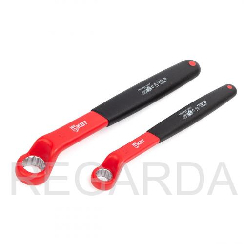 Набор диэлектрических ключей КВТ НИИ-07 – комплект изолированных накидных ключей, предназначенный для безопасной работы с шестигранными изделиями.