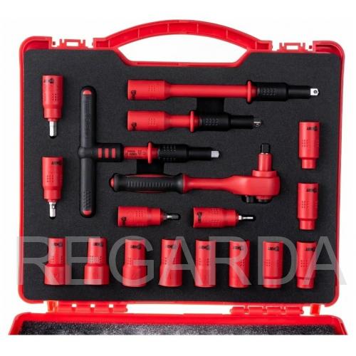 Набор диэлектрического инструмента 1/4" для работы под напряжением до 1000 В, 18 предметов