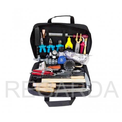 Набор включает в себя 38 предметов и состоит из изолированных плоскогубцев, кусачек и длинногубцев, отверток, пресс-клещей, кабельных ножей, ножовки по металлу, рожковых ключей, торцевых головок, газовой горелки и рукава высокого давления.
