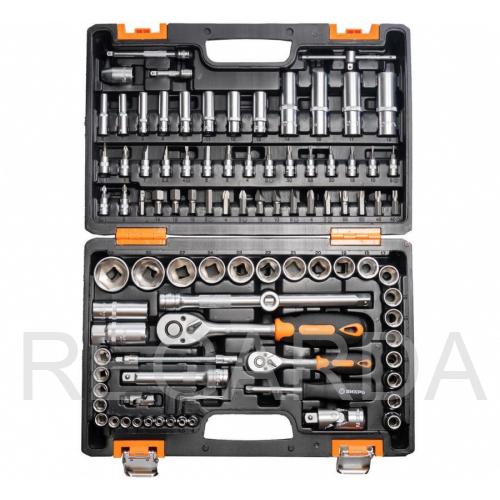 Набор инструмента ВИХРЬ предназначен для ремонта автомобилей, мотоциклов, садовой и другой техники. Подходит как для использования на станциях технического обслуживания, так и в бытовом применении дома или на даче. Инструмент изготовлен в соответствии с международными стандартами. Головки и комбинированные ключи изготовлены из хромованадиевой стали, придающей инструменту высокую твердость и легкость. Биты, биты-вставки и отвёртки производятся из стали S5, улучшающей характеристики крутящего момента и твёрдости. Все наборы упакованы в ударопрочный кейс, изготовленный из жесткого противоударного пластика, с металлическими застёжками. Повышенные показатели прочности, крутящего момента и износостойкости.