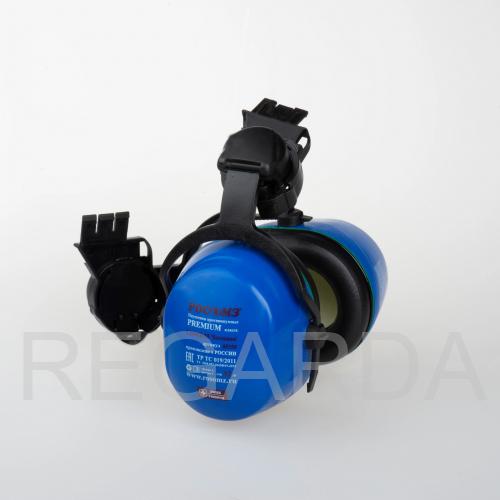 Адаптеры для крепления на защитную каску. Усиленное крепление чашек к оголовью в 2-х точках. Увеличенные чашки изготовлены из прочного АВС-пластика, устойчивого к воздействию повышенной температуры и УФ-излучения. Без металлических деталей. Масса не более 254 г.