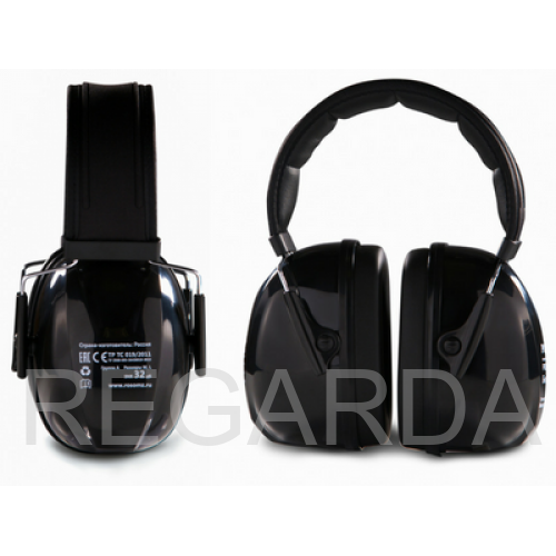 Стальное оголовье с мягким обтюратором регулируется по высоте ношения. Увеличенные чашки изготовлены из прочного АВС-пластика, устойчивого к воздействию повышенной температуры и УФ-излучения. Усиленное крепление чашек к металлическому оголовью в 2-х точках. Масса не более 295 г.