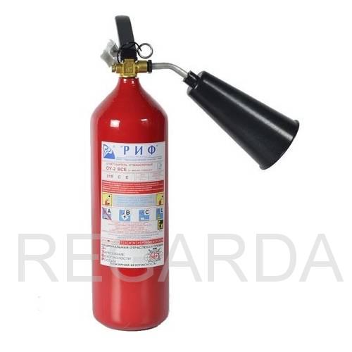 Заправлен углекислотой, которая не оставляет загрязняющих веществ на объекте тушения. Требует перезарядки один раз в пять лет, а также контрольное взвешивание - один раз в год для устранения утечек. Углекислотные огнетушители запрещено устанавливать вблизи нагревательных приборов и под воздействия прямых солнечных лучей. Огнетушители не прошедшие контрольного взвешивания или с истекшим сроком годности необходимо перезарядить.