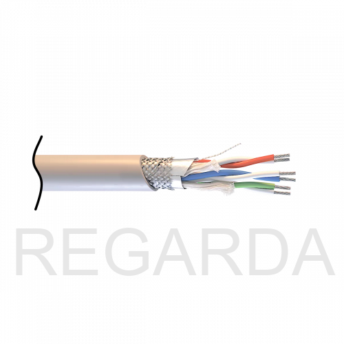 Кабель симметричный, экранированный и с низким дымо- и газовыделением продуктов горения.