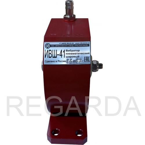 Вибратор пневматический ИВШ-41 производства завода "Красный Маяк" состоит из корпуса, который выполнен из стали. Он оснащен кольцами из высокопрочной стали. Внутри колец расположен стальной шарик. Корпус вибратора герметичен благодаря боковым крышкам и уплотнениям. Вибрация осуществляется за счет вынуждающей силы, которую создает шарик вращаясь внутри колец под действием струи сжатого воздуха.