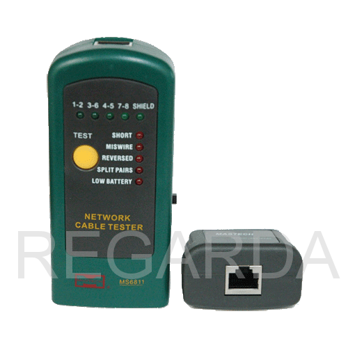 Кабельный тестер MASTECH MS6811 – очень компактный удобный прибор для проверки коаксиальных кабелей, неэкранированных кабелей, экранированных кабелей. Длина проверяемого кабеля может составлять от 0.4 до 200 метров. Осуществляет проверку на обрывы, короткие замыкания, перекрестные, перепутанные и расщепленные пары. Также доступна проверка целостности экранировки кабеля, режим DEBUG, позволяющий быстро определить тип неисправности для каждой пары кабеля.