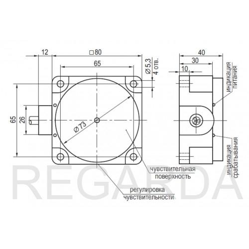 | Габариты, мм | 80х80х40 | |