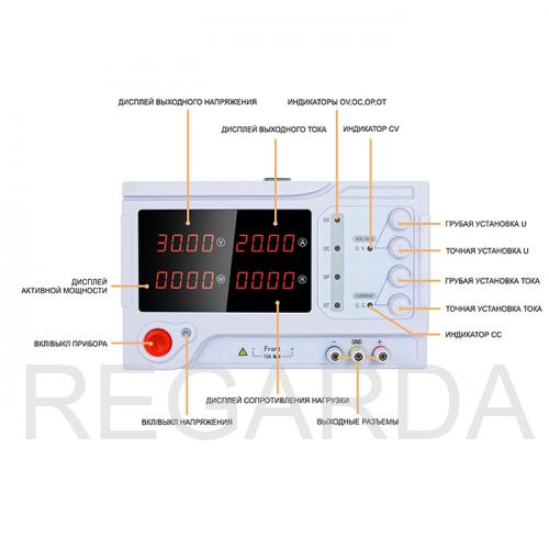 4 индикатора для отображения напряжения, тока, мощности и сопротивления |