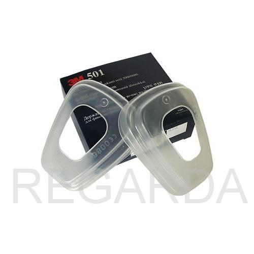 Держатель модели 501 предназначен для фиксации противоаэрозольных предфильтров моделей 5911, 5925, 5935 на противогазовых фильтрах для многоразовых полумасок и полнолицевых масок 3М.