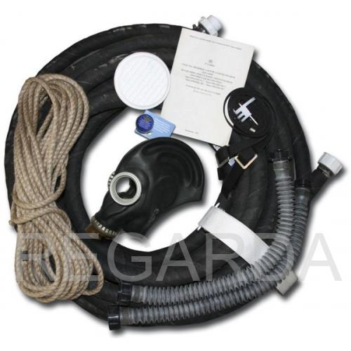 Состоит из комплекта лицевых частей, двух соединительных гофрированных трубок, шланга длиной 20 метров, фильтрующего элемента для очистки вдыхаемого воздуха от пыли и амуниции из хлопчатобумажного, лавсанового или пропиленового материала. Амуниция состоит из поясного ремня с плечевыми лямками и сигнально-спасательной веревки.