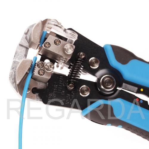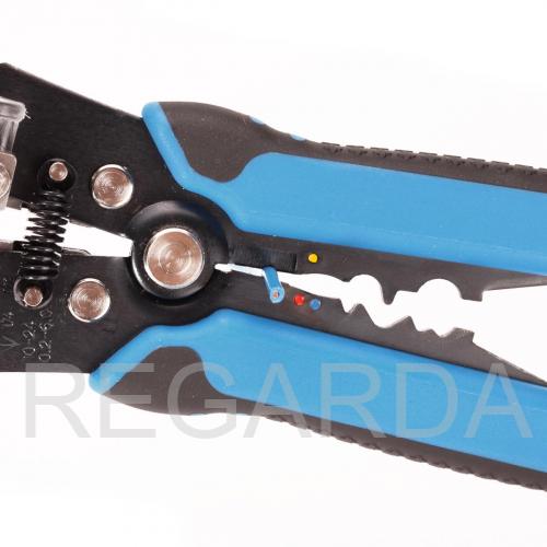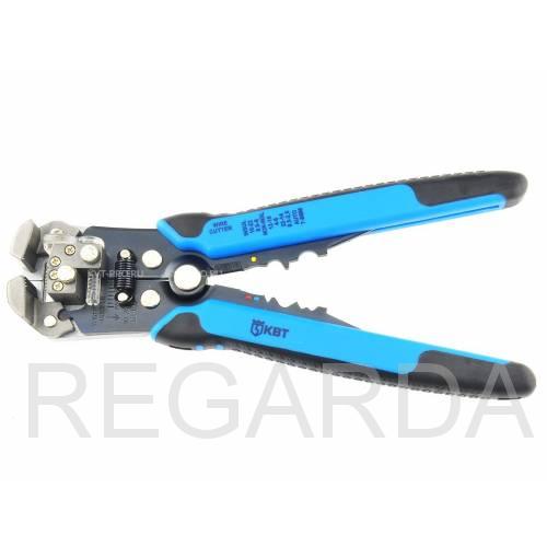 Стриппер автоматический КВТ- многофункциональный электромонтажный инструмент, предназначенный для удаления изоляции с проводов, их разрезания и опрессовки металлических наконечников различных видов (в том числе изолированных).