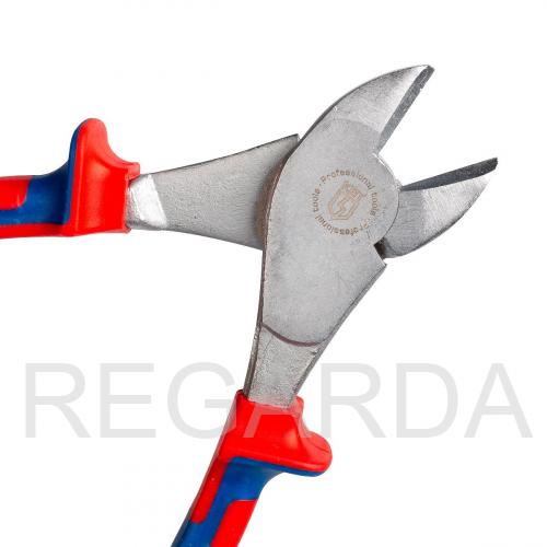 Высокое усилие на режущих кромках достигается за счет применения увеличенного шарнира и коротких губок, которые развивают большое усилие. Оба лезвия имеют двухстороннюю диагональную заточку. Материал, из которого изготовлены бокорезы МАСТЕР 180 (КВТ), – легированная хром-ванадиевая сталь высокой твердости.