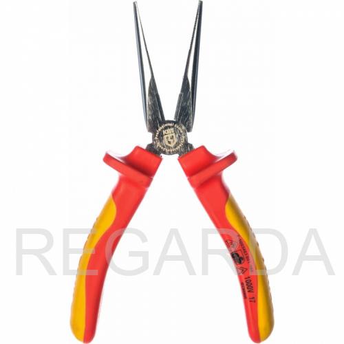 Длинногубцы изолированные КВТ ПРОФИ (160 мм) - ручной электромонтажный инструмент с диэлектрическими рукоятями, предназначенный для работ в сетях с напряжением не более 1000 В.