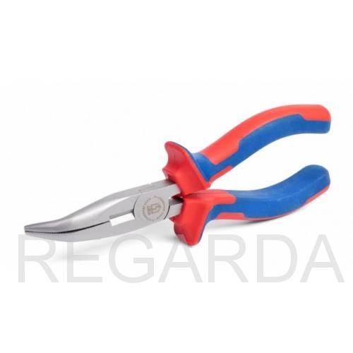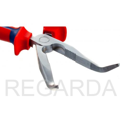 Новые длинногубцы КВТ 77425 с изогнутыми губками предназначены для проведения монтажных и слесарных работ в труднодоступных местах. Ширина захватных губок всего 1,8 мм, а рабочая поверхность снабжена специальными насечками для надежной фиксации. Прочность инструменту придают добавки хрома и ванадия в легированной стали, после чего все длинногубцы подвергают индукционной закалке. С помощью режущей части можно легко перекусывать мягкую проволоку до 1,5 мм толщиной. Рукоятки выполнены из двухкомпонентного материала с эластичными вставками и противоскользящими упорами.