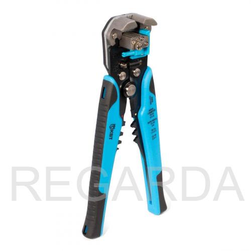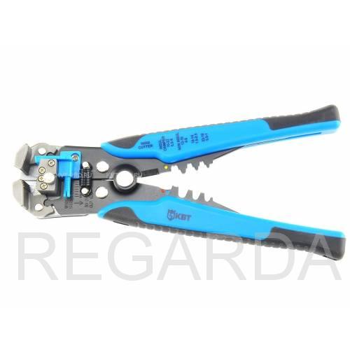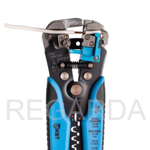 Стриппер автоматический КВТ - многозадачный ручной инструмент, используемый при проведении электромонтажных работ: удалении изоляции с проводов, их резки и опрессовки наконечников различных видов (в том числе изолированных).