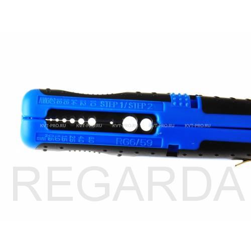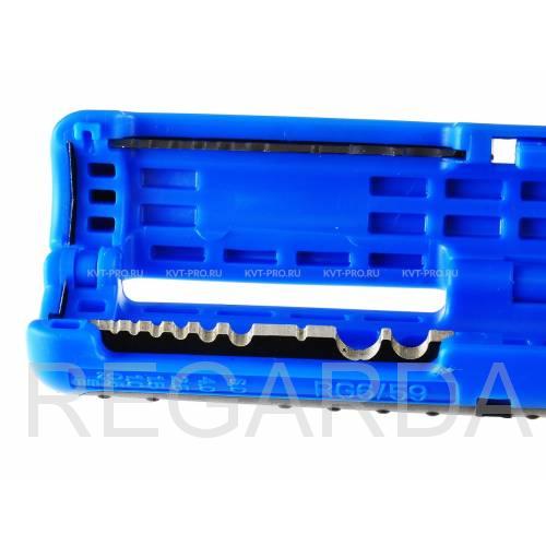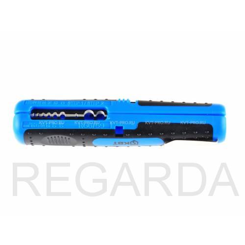 – карманный электромонтажный инструмент КВТ, предназначенный для удаления изоляции с проводов, а также круглых (ПВС, ПВ/АПВ, NYM, МКЭШ) и коаксиальных (RG-6, SAT) кабелей.
