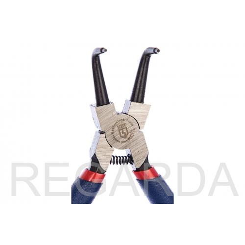 Кольцесъемник КВТ 77434 серии КВИ отличается от базовой модификации загнутыми на 90 градусов концами, что дает возможность работать в ограниченном пространстве. Кольцесъемнику КВИ 160 важна высокая жесткость рабочих кромок и отсутствие остаточно деформации после многочисленных циклов сжатия, поэтому в качестве материала губок используется инструментальная сталь марки У55. Это гарантирует продолжительный срок службы и дает возможность работать со стопорными кольцами любого типа. Для надежного захвата и удержания инструмента в руке были разработаны оригинальные двухкомпонентные ручки из мягкого пластика.