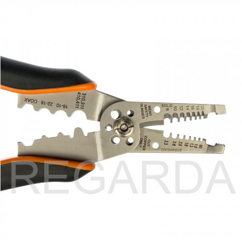 профессиональный ручной инструмент КВТ, предназначенный для удаления изоляции с проводов, их разрезания, формирования петель, опрессовки наконечников и коаксиальных соединителей, а также резки винтов М2,5–М5. Кроме того, концы губок оснащены насечкой и позволяют использовать КВТ WS-01D как пассатижи. Отличается от модели WS-01D ещё большей мощностью и универсальностью.
