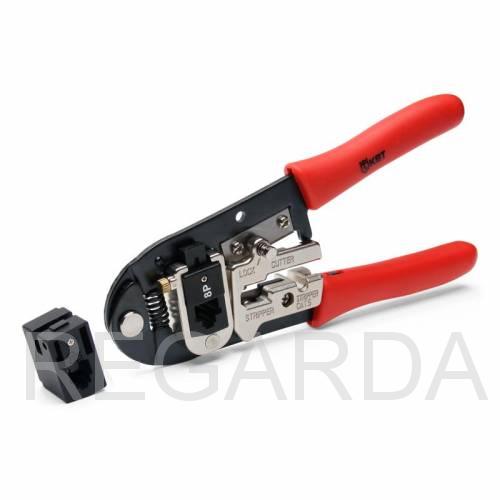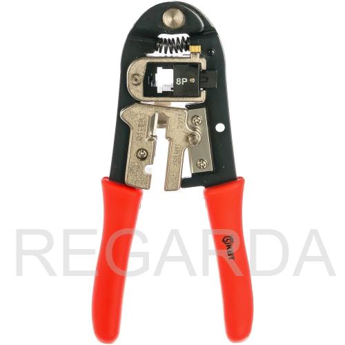 Пресс-клещи обжимные универсальные КВТ JT-01A - профессиональный ручной инструмент, предназначенный для опрессовки RJ-разъемов, перерезания проводов, в также удаления изоляции с плоских телефонных и круглых проводников (UTP, STP).