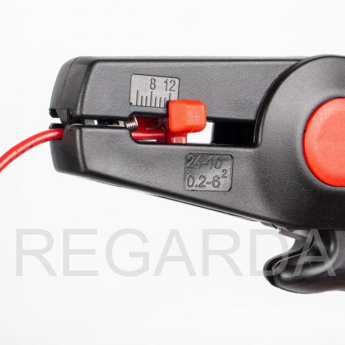 КВТ WS-06 автоматически подбирает настройки для аккуратного удаления оболочки. В рабочую часть инструмента встроен ограничитель, позволяющий выбирать максимальную длину снятия. Предусмотрена также функция фиксации рукояток.