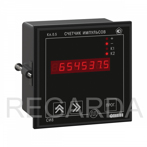 Микропроцессорный счетчик импульсов СИ8. Используется для подсчета количества продукции на транспортере, длины наматываемого кабеля или экструзионной пленки, сортировки продукции, отсчета партий продукции, суммарного количества изделий и т.п. Встроенный в СИ8 таймер позволяет использовать прибор в качестве счетчика наработки, расходомера или для определения скорости вращения вала.