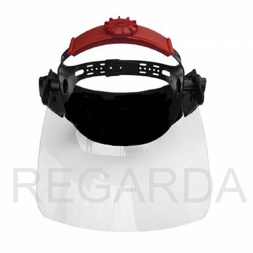 Щиток состоит из корпуса, изготовленного из органического стекла, козырька из пластика и регулируемого наголовного крепления со ступенчатой фиксацией размера обхвата головы (регулировка проводится при снятом щитке).