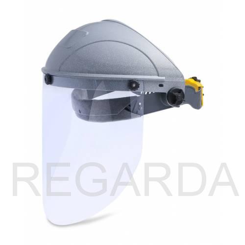 Непрогораемый серебристый козырек из материала SUPER Termotrek®. Экран из антистатичного незапотевающего ацетата целлюлозы 1,6 мм (220*315мм), не термостойкий. Наголовное крепление RAPID с мягким обтюратором.