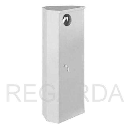 Шкаф для размещения огнетушителя массой 6-12 кг. углового типа, С ЦЕЛЬНОМЕТАЛЛИЧЕСКОЙ ДВЕРЦЕЙ, красного или белого цвета (литера К или Б в названии шкафа); оснащён почтовым замком и гнездом для запасного ключа.