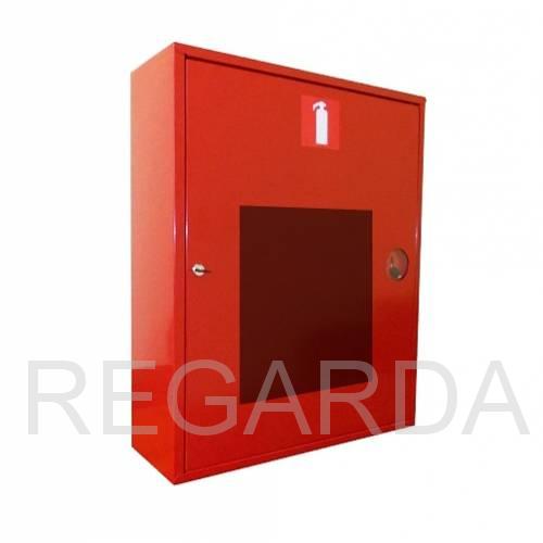 Шкаф для размещения 2-3 огнетушителей массой 6-12 кг., установочные габариты: ширина 600 мм, высота 730 мм, глубина 220 мм; навесного типа, С ОСТЕКЛЁННОЙ ДВЕРЦЕЙ, красного или белого цвета (литера К или Б в названии шкафа); оснащён почтовым замком и гнездом для запасного ключа.