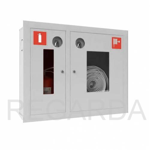 Необходим для хранения первичных средств пожаротушения. В малой секции изделия размещается огнетушитель, а в большой - пожарный кран. Шкафы открытого исполнения не рекомендуется устанавливать на объектах с массовым пребыванием людей и активным движением, т.к. в конструкции модели содержится стекло, которое можно случайно разбить и пораниться. Прозрачные окна на дверцах изделия дают возможность провести визуальный осмотр целостности комплектации шкафа, без необходимости его открывания. Габариты секции для огнетушителей 300х650х230.