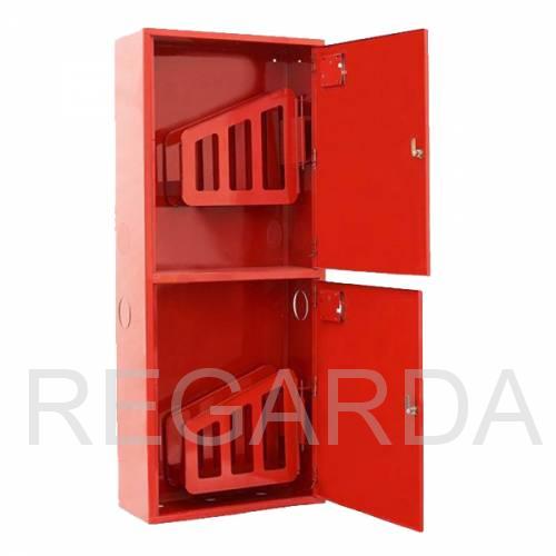 Предназначен для размещения двух комплектов пожарного крана (ПК), каждый из которых состоит из поворотной рукавной кассеты, пожарного рукава, ствола, клапана (вентиля) и соединительных головок. Модель имеет две секции вертикального позиционирования, по одному комплекту ПК в каждой. Изделие выполнено из тонколистовой стали и окрашено в красный цвет.