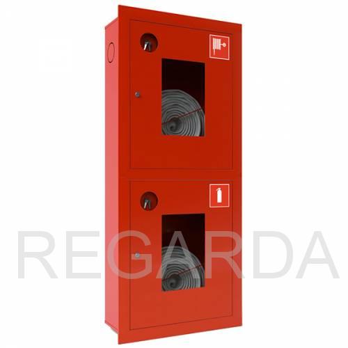 Предназначен для размещения двух комплектов пожарного крана (ПК), каждый из которых состоит из поворотной рукавной кассеты, пожарного рукава, ствола, клапана (вентиля) и соединительных головок. Модель имеет две секции вертикального позиционирования, по одному комплекту ПК в каждой. Изделие выполнено из тонколистовой стали и окрашено в красный цвет.