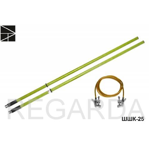 Штанга шунтирующая ШШК-25 предназначена для шунтирования проводов, разряда конденсаторов при выполнении работ по проверке, регулировке к ремонту секционных изоляторов, разъединителей, изолированных сопряжений и нейтральных вставок, замене искровых промежутков контактной сети переменного тока электрифицированных железных дорог.