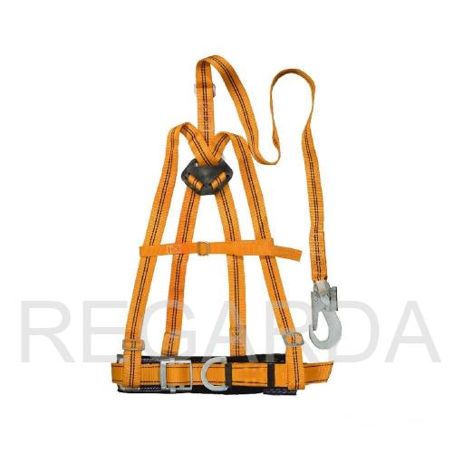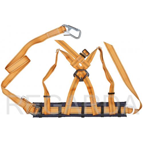 Пояс ПП со стропом из полиамидной ленты, наплечными лямками (нагрузка на разрыв составляет 2т.,ширина 36мм., длина фала включая карабин 1440 (1700)мм. Фал имеет регулировочное устройство.(планка фала) выполненное из листового метала t-5 предназначенного для изменения длины фала в зависимости от условий работ).