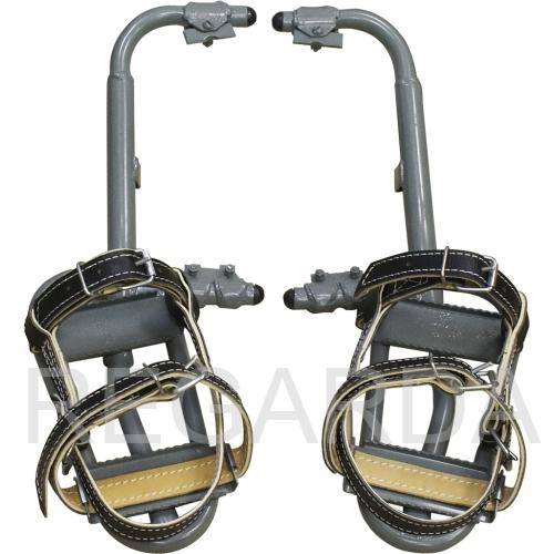 Лазы предназначены для перемещения по железобетонным трапецеидальным стойкам опор линий электропередачи. Четвертый дополнительный ремень поддерживает ступню со стороны пяты, за счет этого нога жестко фиксируется на подножке когтя.