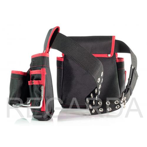 2 симметричных больших подсумника с 5 отделениями и 1 стальным держателем для молотка каждый и центральная сумка-карман