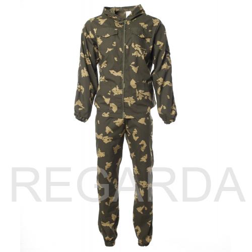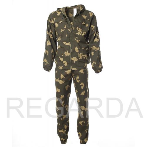 Костюм "ПОГРАНИЧНИК" изготовлен в соответствии с ГОСТ и включает в себя два предмета: куртка / брюки. На куртке расположен накладной карман на рукаве и капюшон. Регулировка посадки изделия возможна по талии и низу брюк эластичной лентой.