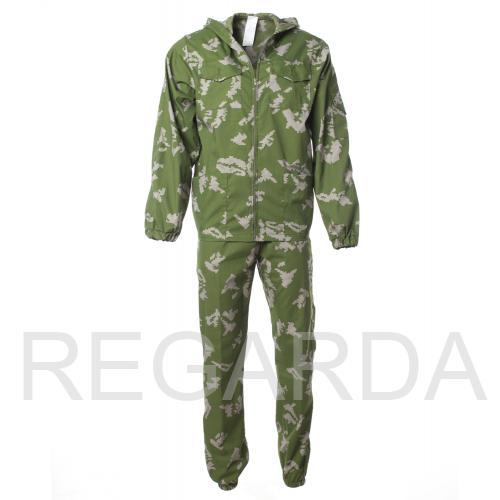 Костюм "ПОГРАНИЧНИК" изготовлен в соответствии с ГОСТ и включает в себя два предмета: куртка / брюки. На куртке расположен накладной карман на рукаве и капюшон. Регулировка посадки изделия возможна по талии и низу брюк эластичной лентой.