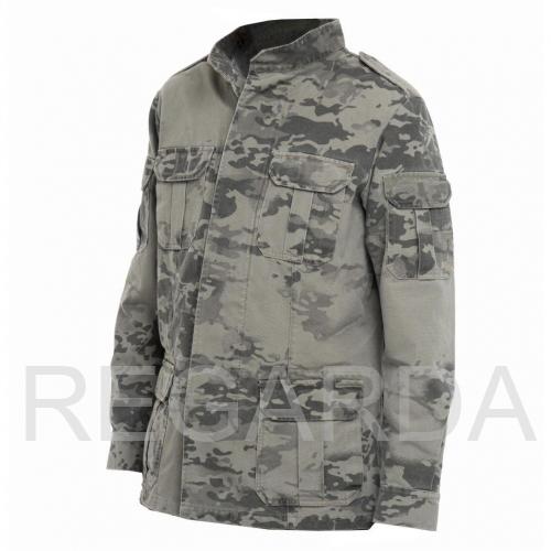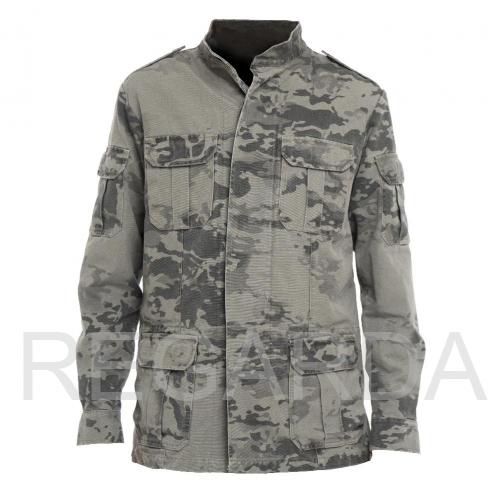 Куртка мужская из хлопка "YUMCO", модель A2200414M выполнена на пуговицах, закрытых ветрозащитной планкой. Изделие оснащено 12 карманами. Внешние: 2 на рукавах, 2 на груди, 2/2 на талии (накладной + прорезной). Внутренние: 2 нагрудных на молнии и 2 на поясе на липучках. На модели расположен воротник-стойка.