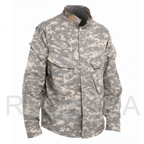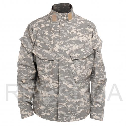 2/2 кармана спереди (накладной и прорезной). Куртка закрывается на пуговицы. Модель утягивается по фигуре. На изделии расположен воротник на липучках, сетчатый подклад и карманы под налокотники. Множество резинок и липучек позволяют подогнать одежду под удобный силуэт.