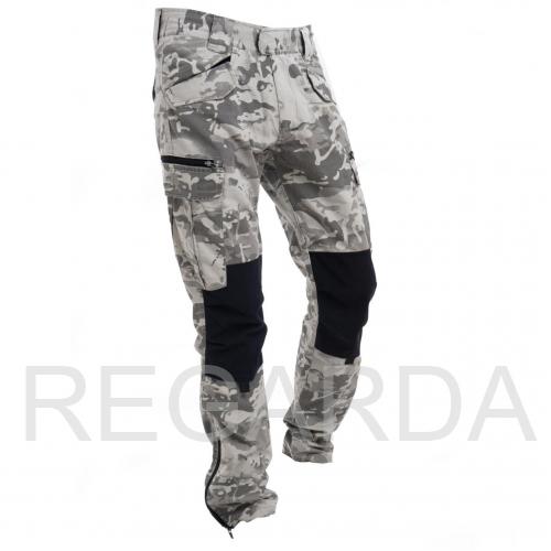 Мужские брюки "YUMCO", модель А2200392М оснащены 8 карманами для удобного хранения мелочей: 2 на поясе спереди, 2 сзади, 4 боковых (2 на молнии). На голени размещены утяжки для фиксации посадки. Штанина увеличивается под ботинки с помощью молнии. Пояс закрепляется липучкой. На коленях размещена двойная ткань для большей износостойкости.