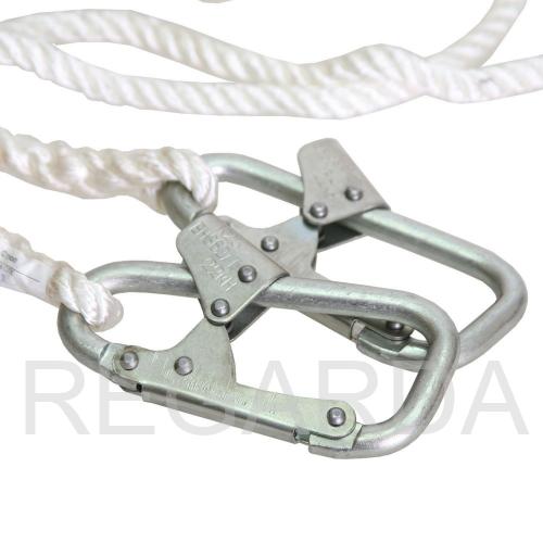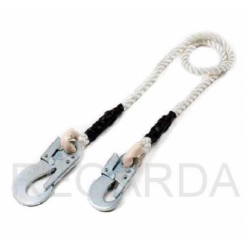 Страховочный строп «В» длиной 2 и 5 м выполнен из высокопрочного износостойкого полиамидного каната и снабжён двумя монтажными карабинами. Отдельно строп не может использоваться как средство, предохраняющее от падения с высоты, только в комплекте с удерживающими или страховочно-удерживающими привязями различных модификаций (УП1, УПС2Д, УСП2Ж и др.). Предназначен для обеспечения безопасности высотных работ, для выполнения функций удерживания, поддерживания и позиционирования на рабочем месте, для ограничения перемещения в пространстве, в т.ч. и для предотвращения свободного падения. Удерживающие привязи, оснащённые стропами нестандартной длины, могут использоваться для обеспечения безопасности работ в колодцах, резервуарах, других замкнутых пространствах, а также для спасения или экстренной эвакуации люде