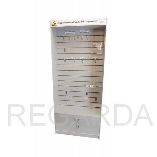 Шкаф ELMA104 для хранения СИЗ открытый 850 предназначен для создания условий хранения средств индивидуальной защиты, применяемых в электроустановках, в соответствии с требованиями инструкции СО 153-34.03.603-2003 по применению и испытанию.