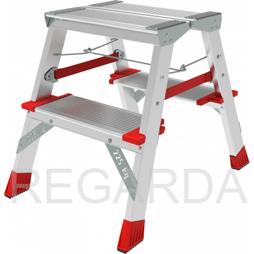 Профессиональная двухсторонняя алюминиевая стремянка со ступенями 130 мм и складной площадкой 350×260 мм NV3127202