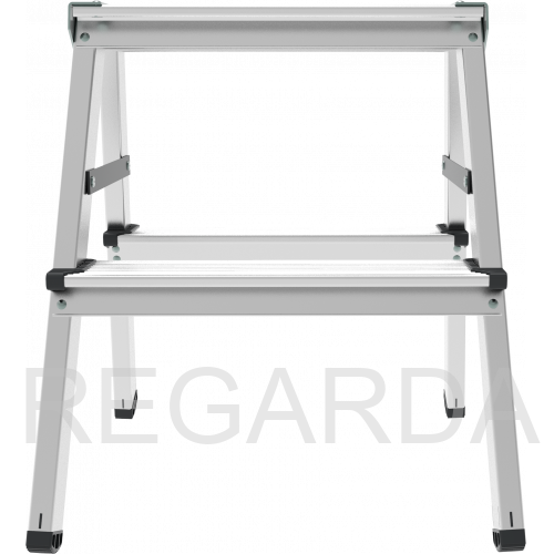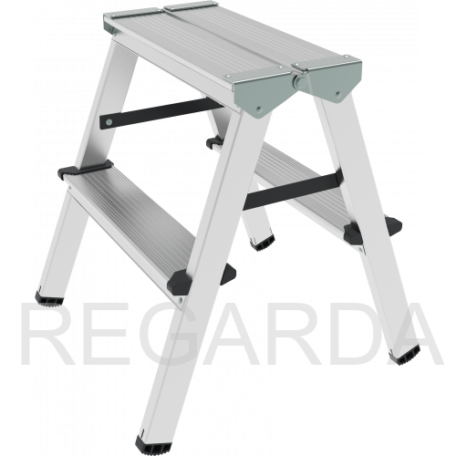 - Алюминиевая складная площадка 350×160 мм из 2 ступеней. Удобно ставить инвентарь.