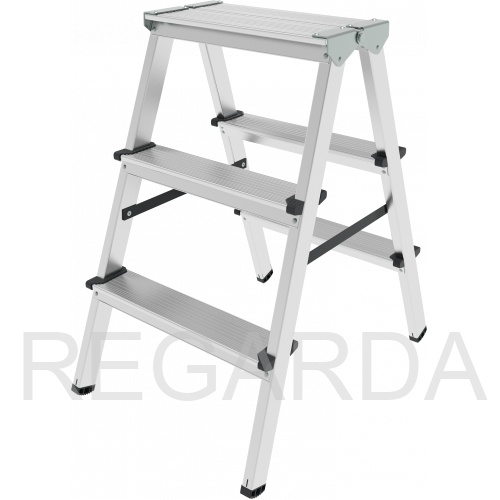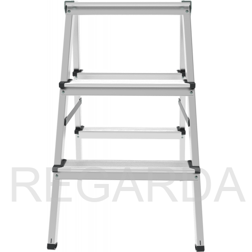 - Алюминиевая складная площадка 350×160 мм из 2 ступеней. Удобно ставить инвентарь.